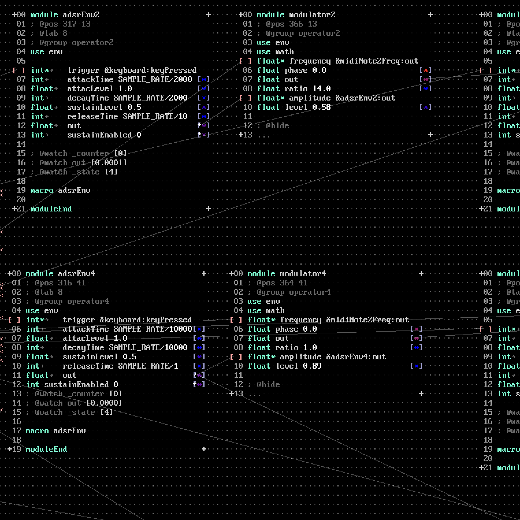 8f4e is a stack oriented programming language with a visual code editor that I created to perform generative music at algorave events.